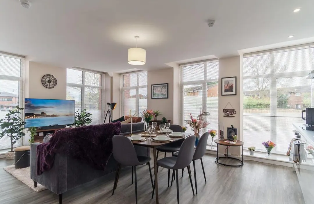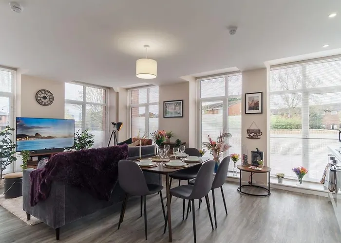 Le domicile de 65 m² se trouve à 3 km du centre-ville de Manchester. Les attractions à proximité de la résidence incluent le Centre de conférences King’s House, à 10 minutes en voiture. 2 Bedroom Modern Apartment In Manchester est niché à 2,1 km de la Bibliothèque de Chetham.